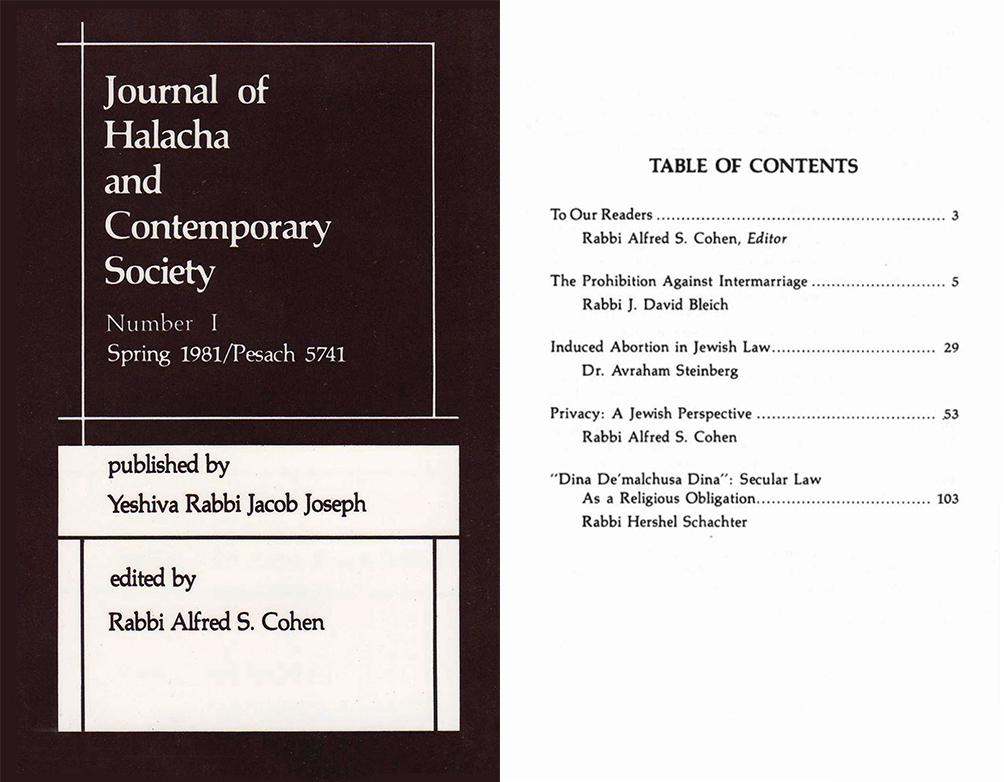 The Journal of Halacha and Contemporary Society is published twice a year by the Rabbi Jacob Joseph School. We welcome comments on the articles that have appeared in the Journal and suggestions for future issues. They should be sent to the Editor, Rabbi Benzion Sommerfeld, at RJJJournal@gmail.com.